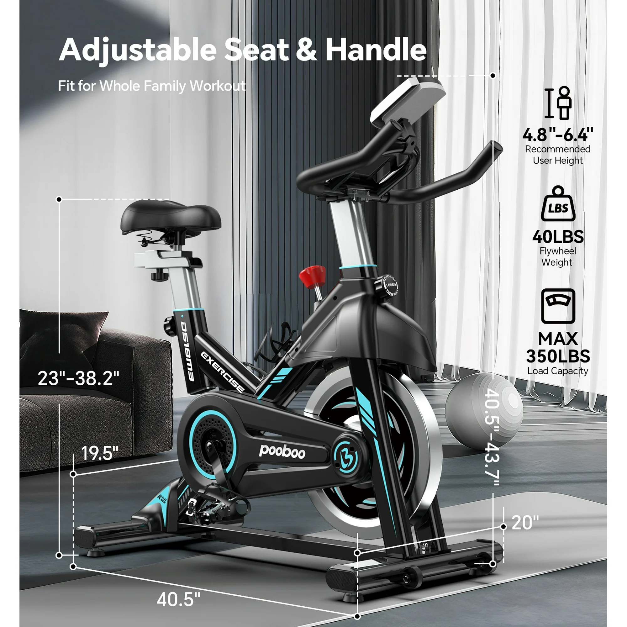 Bicicleta Estacionaria Pooboo con Resistencia Magnética | Cardio en Casa, 350 lb, Volante de 40 lbs