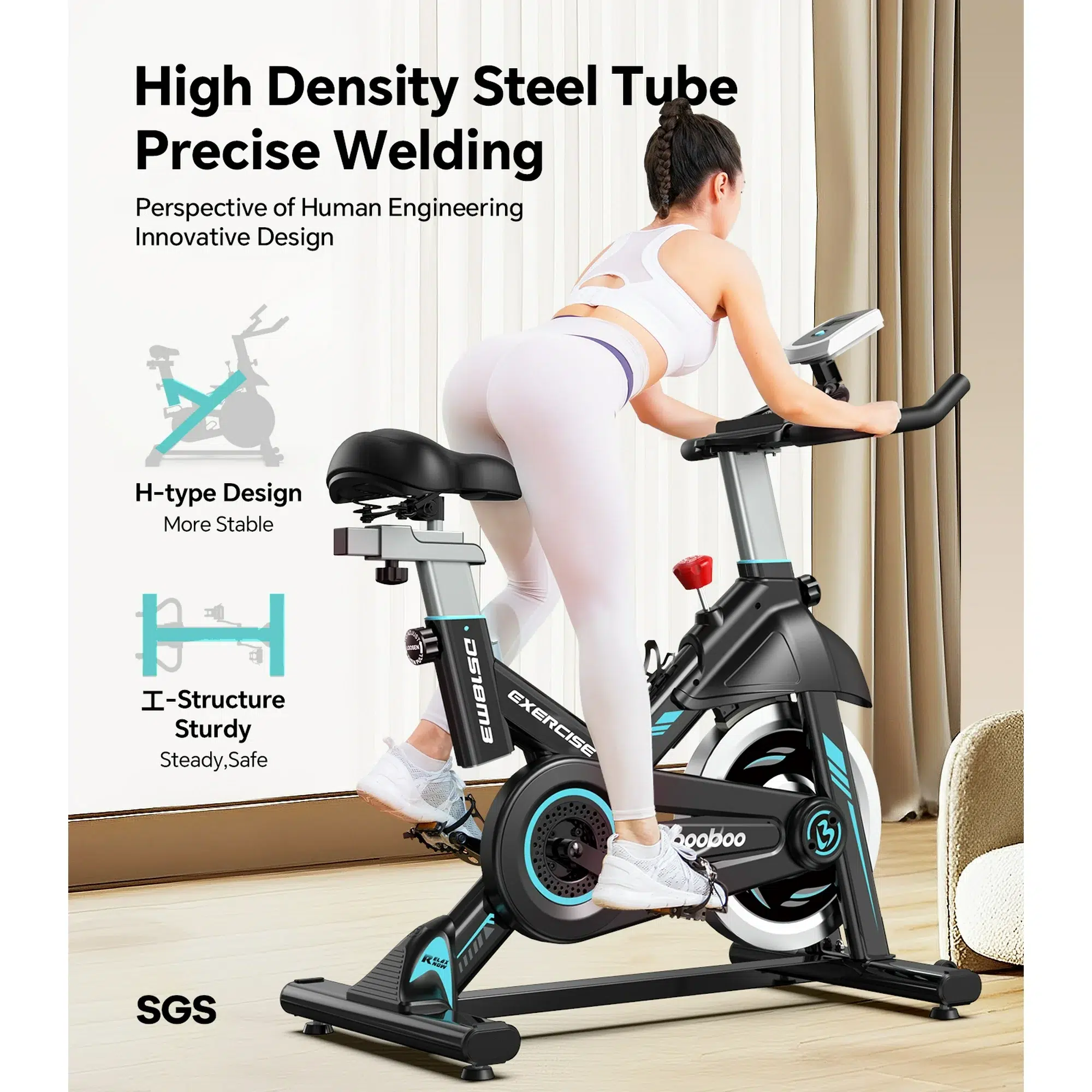 La nueva Pooboo D518 – 2025 Edition ha sido diseñada pensando en usuarios exigentes que buscan una bicicleta robusta, silenciosa y cómoda. Ideal para entrenamientos cardiovasculares en casa u oficina.
