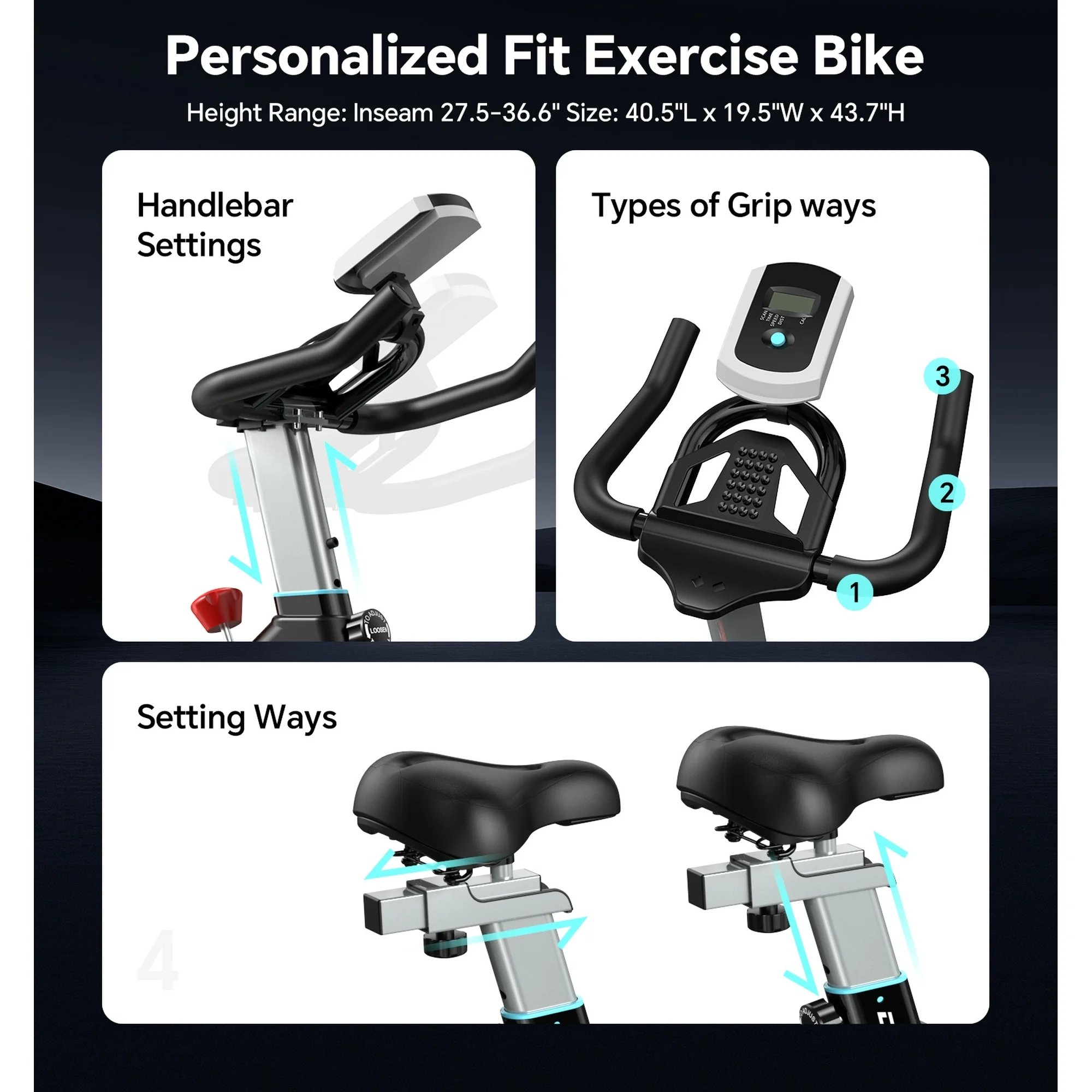 • Asiento ajustable en 4 direcciones y manillar en 2 direcciones para adaptarse a cualquier persona de la familia.