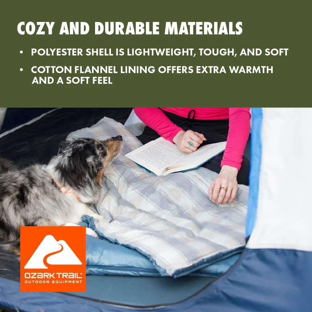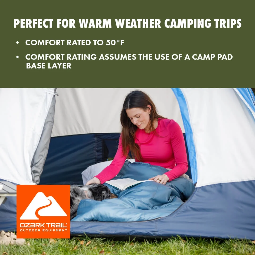 Bolsa de dormir rectángulo Ozark Trail 50 °F – interior de franela, azul