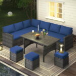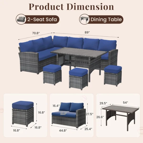 Conjunto de Muebles de Patio AECOJOY – 7 Piezas en Ratán PE Azul Oscuro