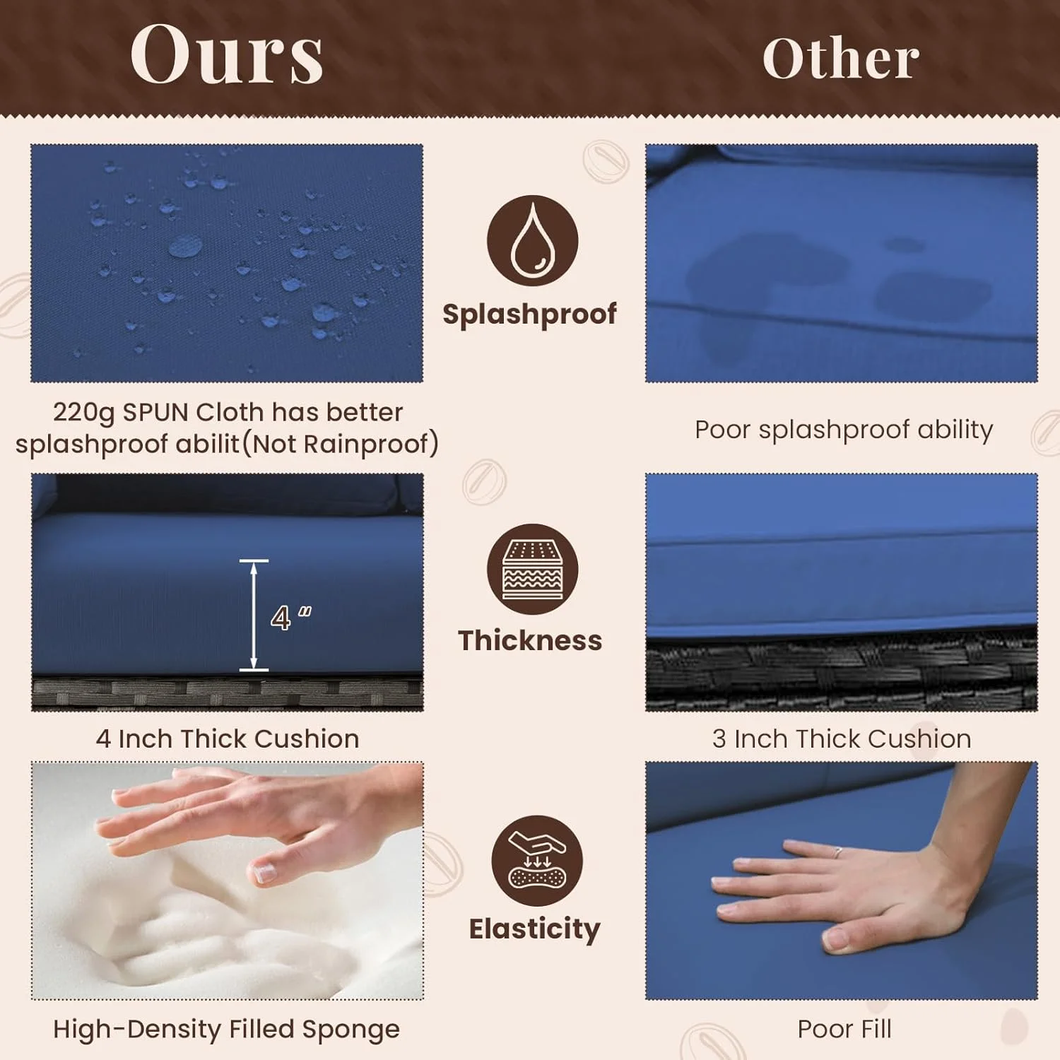 Materiales de alta calidad: Estructura de acero recubierto con polvo y ratán PE trenzado a mano, resistentes a la intemperie.